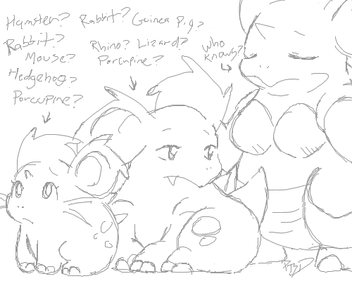 Sure, many Pokemon aren't supposed to be easily identifiable, but the Nidos are curious creatures, if only because they seem like familiar animals at the beginning, then trail off into strange hybrids later. I've done a lot more research into this than necessary (which is actually to say I just discovered the obvious and found supporting evidence), so I can say with some confidence that at the least, I know what Nidoran is related to. I'll go into details about this later, but for what I know, I've looked into it enough to have an idea of what Nidos are NOT, despite claims otherwise, and for certain, they cannot be classified as a single animal (the bunny in Aqua Bunny is a generalized foundation, but it's not the absolute).
