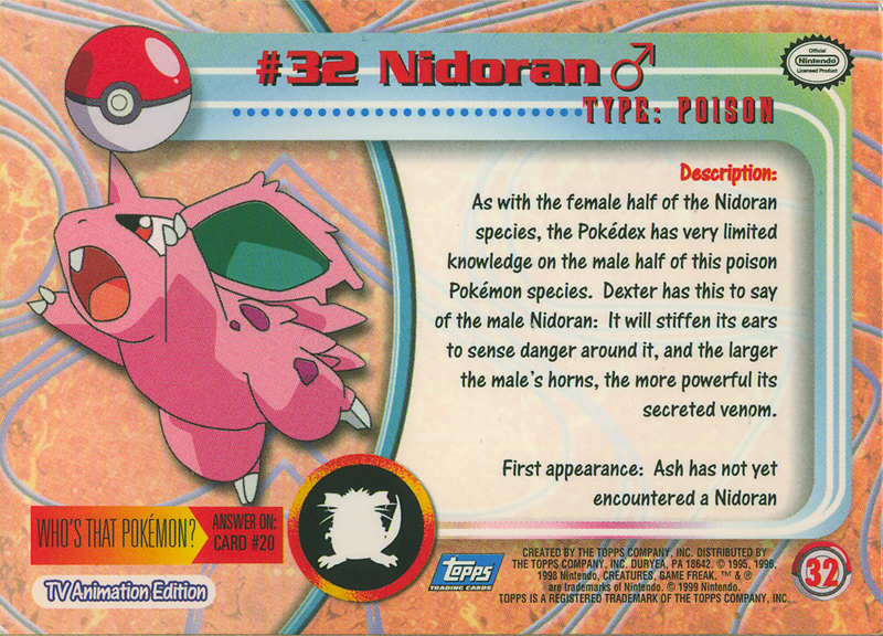 Topps Pokemon Card - Nidoran Male