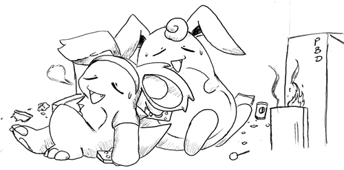 Lisa and Tuff tired out from too much gaming. You can tell this picture is old because I doubt they're using their Wii much anymore. At least not compared to whatever current gen home console they're playing now.