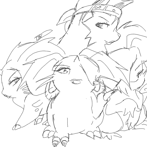 Drawn back when I was getting more into anatomy and stuff. I also got tired of drawing in official-esque styles (hint: one of the reasons the Carmela comic became boring to do). I hate restrictions, and being on model at all times. Only money grubbing regimes force that kind of stuff on anybody. Now don't get me wrong, guidelines are fine, I try to keep characters at identifiable and within noticeable silhouettes (in this case, a Nidorina should still LOOK like one), and certain rules should be followed. Being all willy nilly without rhyme or reason is just as bad as being the equivalent of an artistic Stalin.