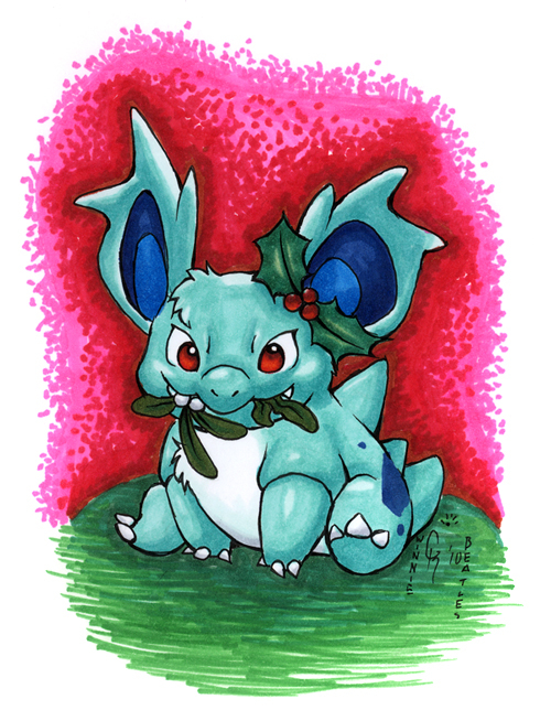 Remember kiddies! Mistletoe is a poisonous and parasitic plant! Nettle the Nidorina is eating all the leftover mistletoe. It's a holiday delicacy for poison-types!