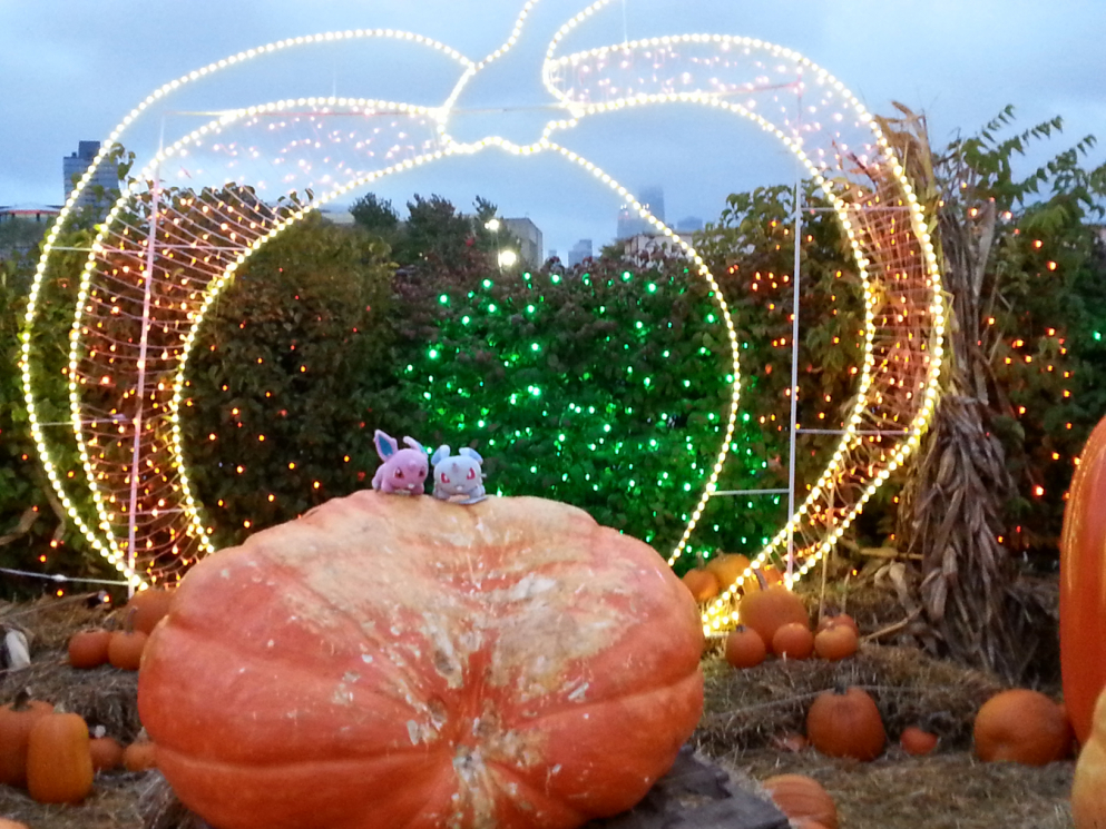 A corn maze out in the city? Who knew? The Nido siblings eagerly await nightfall... who knows what kinds of thrills they may find when they finally enter the maze later on, but for now? These pumpkins make a great photo opportunity.