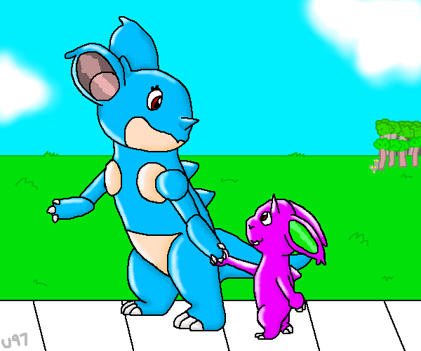 Best Nido pic I've ever done, IMHO. :3 Yes, that little thing by the trees is an Umbreon. X3