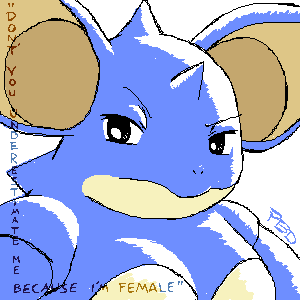 Required Nidoqueen picture, except a bit more stylized. Also, I semi bordered the picture with her Mystery Dungeon quote. I used it because it's true. I've always found her to be more useful.