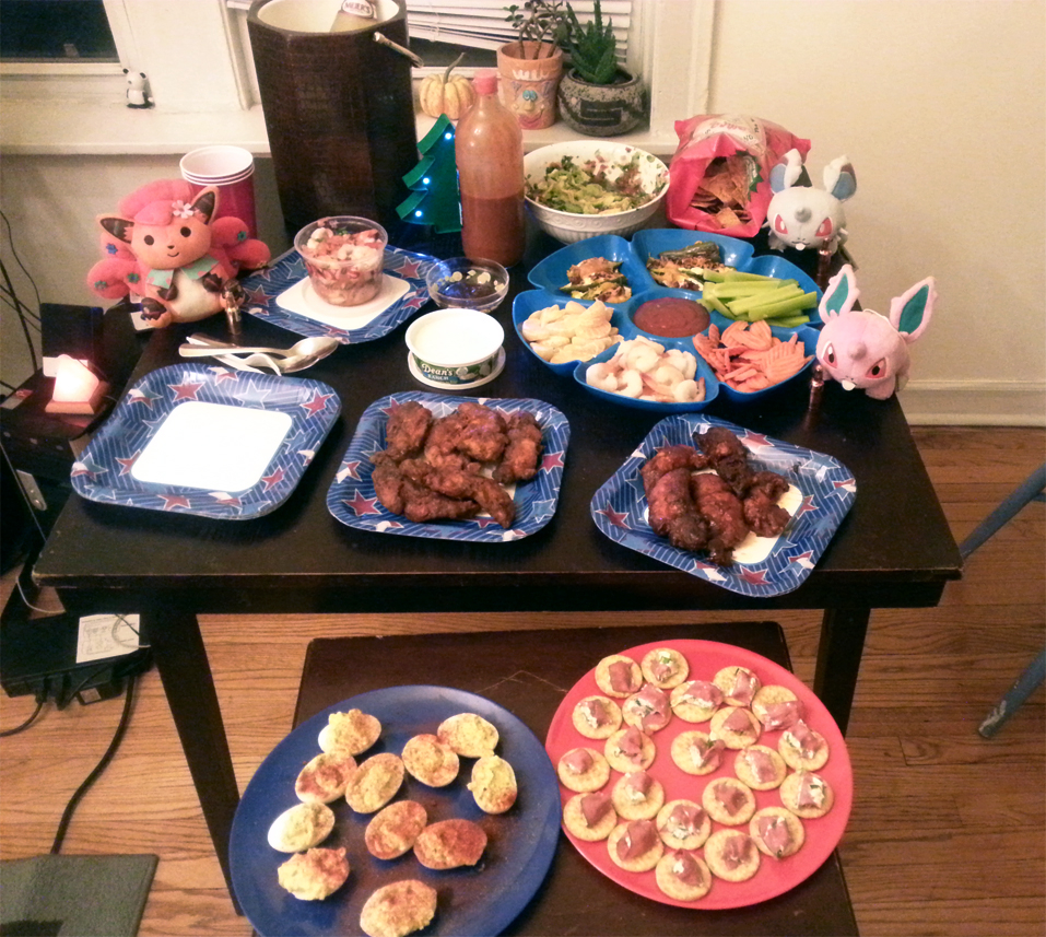 Vulpix has invited the Nido siblings over for a New Year's Eve party. Lots of very tasty things to eat!