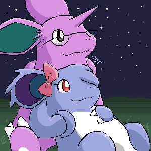 Nidorino may not be good at a lot of things, but if there's one thing he can do right, he can be romantic. Nidorina always enjoys these moments with him. A favorite pastime of theirs is to go star gazing. As they cuddle and look towards the jewels in the heavens, they watch for stars shooting by, only wishing the moment would never end.