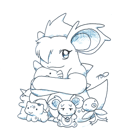 Nidorina, with dolls of those closest to her. Missing are her family members, though.