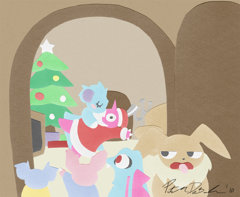 So that's why your present went missing. You remember that kid that always wanted to know what everyone else got? And if s/he could have, would've taken it from you? It's kinda like that. Anyway, a bit of a rush job, here, in that I really did not have the time to work on this and another thing (and would've preferably stuck with the other thing). The concept I had in mind for a couple of weeks, though, so at least there's that. It explains why I didn't bother with digital colors, though.