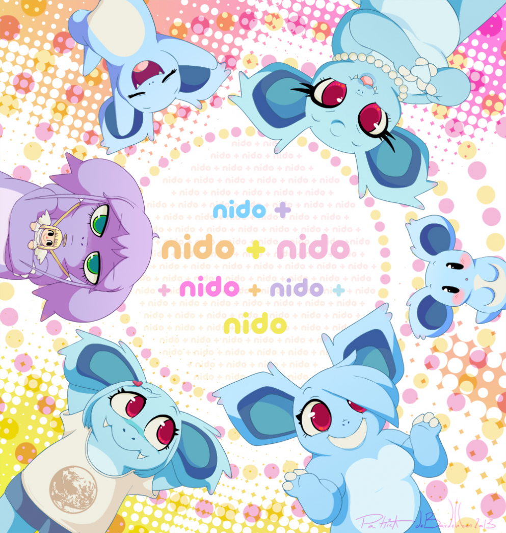 It appears that these days, "The Big Three" have become "The Big Six", and I'll most likely cap it here. Nevertheless, Aqua Bunny wouldn't be half as interesting without the contributions of these characters in whatever entertainment medium they best reside in (and what they've inspired in other fans to create for themselves). In fact, I wouldn't run this site (STILL) if it was purely a site for Pocket-men facts and figures. I have a lot of fun with these Nidorina, but that's no slight towards the other family members (the everyman Nidorino, the other loafer Nidorino, and Ms. Nakamura, a pleasant but busy bee of a Nidoqueen to name a few). In appreciation of these characters, here's a bright, candy colored pic for you, full of happy smiling Nidorina (Charlotte's not unhappy...)