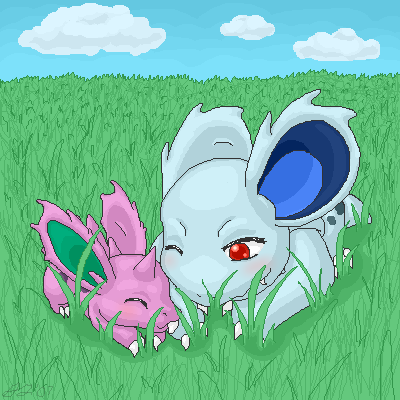 The two Nido-thingies are mother and son or siblings or something like that. =3 ...I dunno what to say XD I remembered to try and make the Nidorina look feminine rather than whutdacrap-y, so I did.