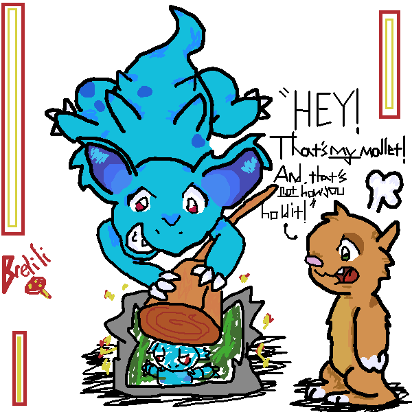This was my first time drawing the two Pokemon featured in this picture, so there's probably some slight problems, and the background was admittably done a bit hastily to keep from having a bland white background, but aside from that I rather like how it turned out.