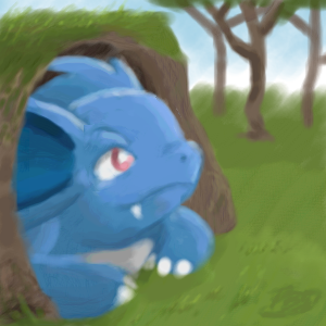 An attempt to create a picture using only the paintbrush tool in an oekaki. It's just OK. Drawing wild Nidos isn't really my forte
