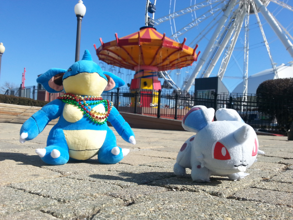 It's Mardi Gras, and grandma wanted to get herself some beads! Nidoran, however, is too embarrassed by this action to even want to be in the same picture. "Please, Gram. Cover up. I can't..."