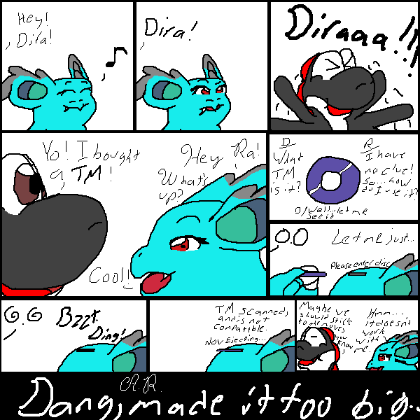 As you can see... Dira is my original character. She has grey ear tips. She is a Nidorina. Also, you can see how much I am not good at drawing with a mouse. The swirling, in the background, is what's going through her mind. She's sorta, dreaming of the heat of the sun.