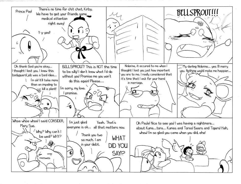 Friends through thick and thin, it's Nidorina and Bellsprout! A collection of old comics from the beginning, redrawn and in some cases, rewritten. Plus, a few bonus comics at the end that are all new. It's Alternate Universe, the cross over of cross overs.