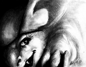 The original picture is 2.5x3.5 and it was done in pencil and tweaked in Photoshop CS2
